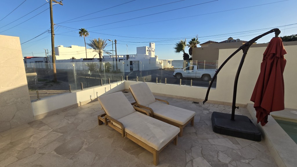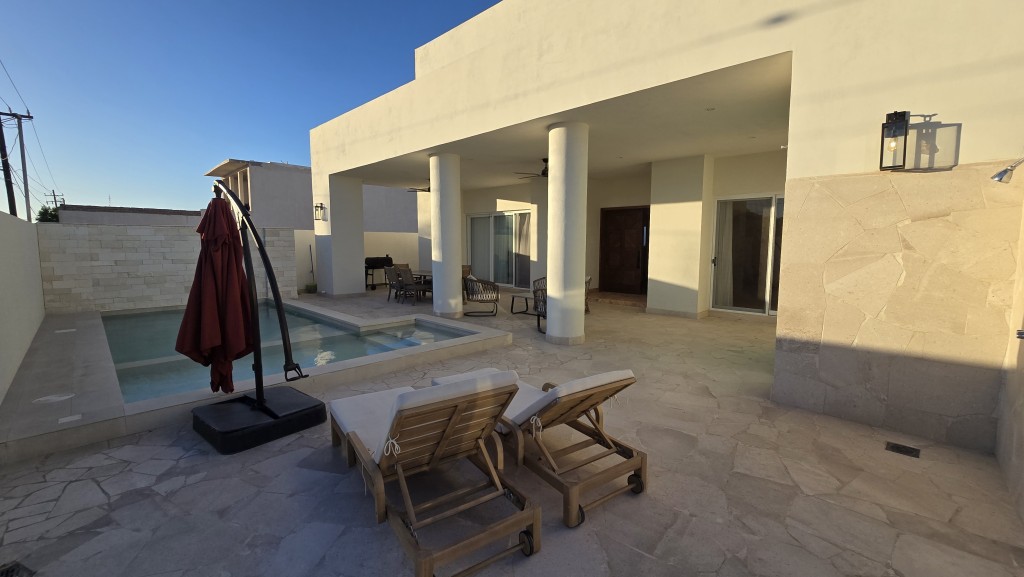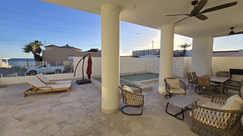 Disfruta en esta casa nueva. De 4 recamaras. Ubicada en el poste 132 cuenta con. Amplio porche con alberca privada y un fácil acceso a la playa justo enfrente de la casa. Capacidad para 15 personas no mascotas